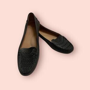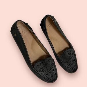 UGG Clair Perforated Leather Slip-on Loafers Driving Shoes Sz 9 Womens Black EUC