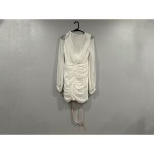 Mac Duggal 26655 White Long Blouson Sleeve Ruched Mini Dress Sz 4