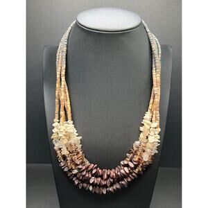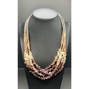 Gorgeous vintage multi-strand beaded and crystal necklace. Has 5 strands total. Quite a statement piece. Is 17” in total length. 3 different crystal gemstones. A great piece for summer.