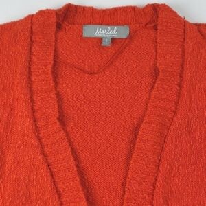 Marled Reunited Clothing 100% Cotton Knit Orange Textured 3/4 Sleeve Cardigan Sw