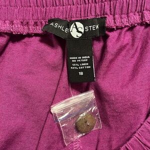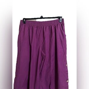 Ashley Stewart Pants Sz 18 Wooden Button Detailed Linen Blend Wide Leg Flare