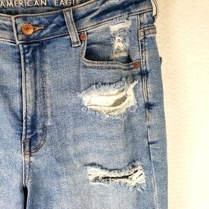 American Eagle Stretch Distressed Light Wash Mom Jeans Size 6