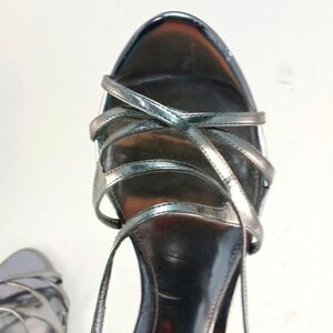 LAUREN Ralph Lauren Abriella Metallic Silver Strappy 4-inch Stiletto Size 10B.