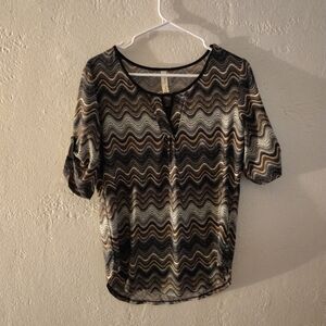 Stylish women's top featuring a vibrant zigzag pattern. Perfect for casual outings or a night out. The multicolor design adds a touch of flair to any wardrobe.