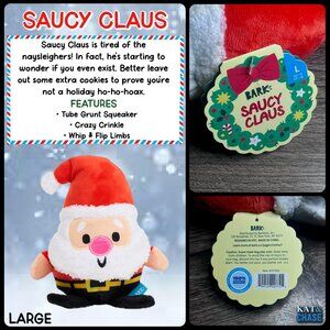 Bark Box Saucy Claus Dog Toy L Large 50+ lbs Squeak, Crinkle New Christmas