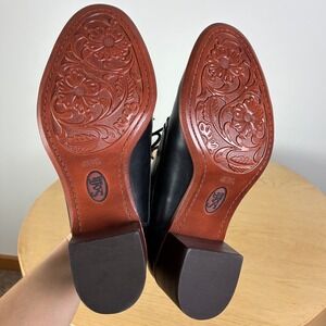 Classic leather lace-up Oxfords in women's 8.5 with a mid heel and two-tone styling, perfect for academic, retro, or steampunk looks.