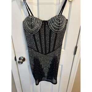 Fashion Nova mini dress rhinestones and mini diamonds sexy black dress size L