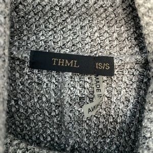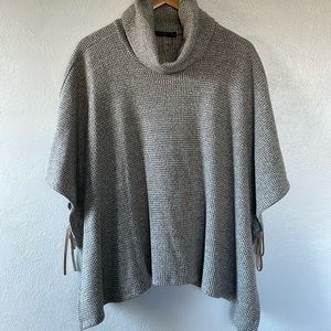 THML Gray/Brown Turtleneck Open Side Poncho With Faux Leather Ties XS/S
