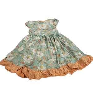 Light green matilda jane dress with flowers and bees. The print is called "Blissful Bees." It is in excellent pre-owned condition.