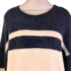 Arula Women's Sweater Navy Blue and White Size 0X Crew Neck Long Sleeve Pullover Striped Very Soft and Cozy