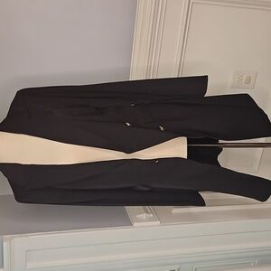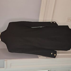 Dapper Dan has nothing on you. This refined long jacket is the perfect finishing touch to any simple outfit. Its peaked lapels add character to a tailored fit. Functional front pockets are placed along the waist where they meet vertically placed double buttons. Wear it over a two-piece ensemble with strappy heels for a feminine take on a vintage look.