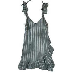 Altar'd State Women's M Dress Green Striped Sleeveless Ruffle Wrap Mini Casual