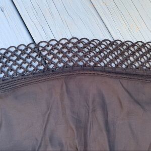 Beautiful Elie Tahari black silk skirt featuring a flattering A-line silhouette and delicate eyelet lace trim along the hem. Crafted from luxurious silk with a soft, lightweight feel and elegant drape. The intricate lace detail adds a feminine, sophisticated touch—perfect for work, date nights, or special occasions.