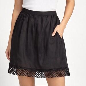 Elie Tahari Black Silk Eyelet Lace Hem Skirt Size 2 Elegant A-Line