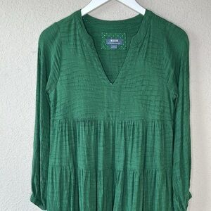 Anthropologie Maeve Amber Tiered Tunic Long Sleeve Dress in Evergreen Size XS