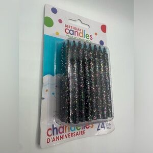 Birthday Candles Black with Glitter - 24 Pack