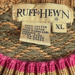 Vintage Ruff Hewn Heavy Cotton Sweater Brown Size XL Geometric Pattern