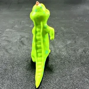 Bring a smile to any collector's face with this delightful green alligator figurine. Its cheerful expression and playful stance, complete with a tiny orange crest, make it a charming addition to any collection. The textured scales and vibrant lime green color with subtle aqua speckles showcase its playful personality. Perfect for desk decor, a bookshelf accent, or a special surprise for a young enthusiast.