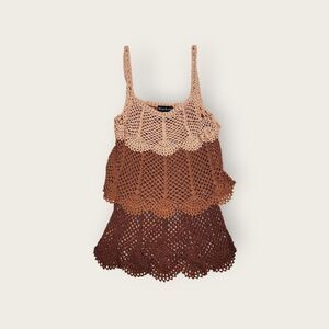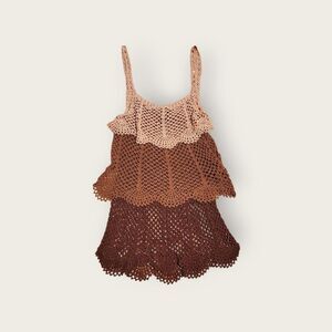 Vintage Y2k early 2000s Bebe brown knit tiered see through boho festival tank top