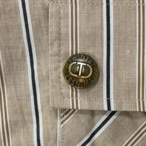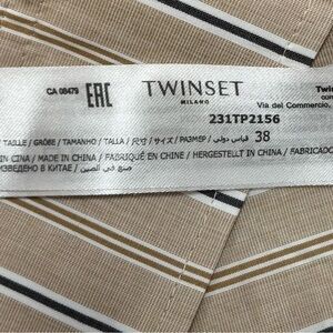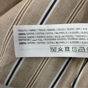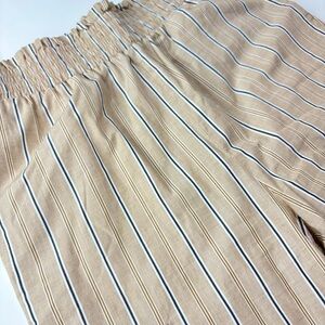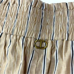 Twin-set Milano vertical striped beige, navy & white cargo pants. Pull-on construction with wide shirred elastic waistband. Beautiful detailing. 100% cotton. Excellent used condition. No flaws. Please see photos for dimensions. US size 2.