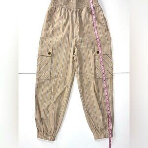 Twin-set Pull-on Utility Cargo Pants Vertical Striped 100% Cotton Shirred Waist