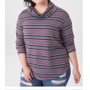 Lane Bryant Striped Cowl Neck Long Sleeve Tee Top Stretch Size 18/20