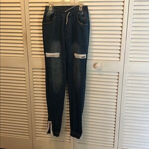 Stylish blue Jean Zipper jogger pants. Perfect for casual outings.