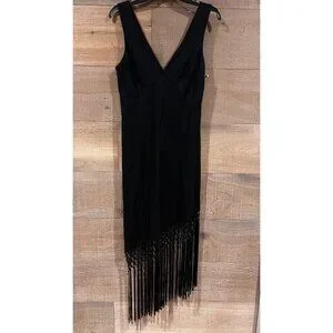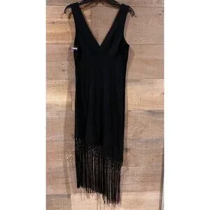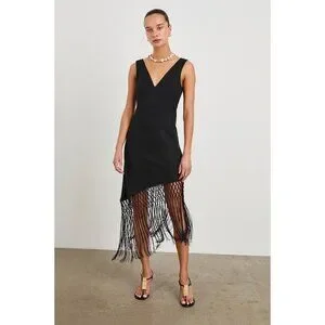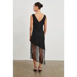 RAILS TAMARA black fringe asymmetrical DRESS size M NWOT