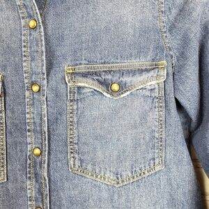Zara Trafaluc Chambray Boho Pearl Snap Shirt XS Cowgirl Western