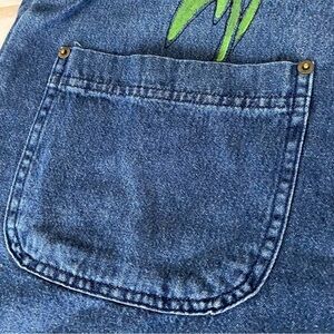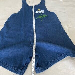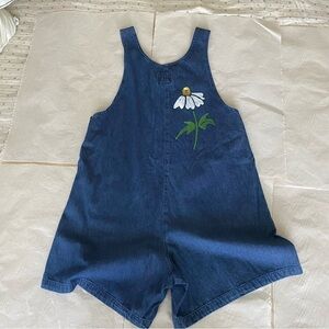 SunBelt Denim overalls Painted white daisies Front pockets Decorative buttons S