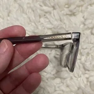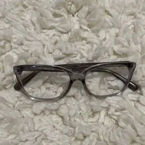 Elegant clear gray frames by Coach. Ideal for a sleek style. 5176 transparent grey prescription glasses , very nice glasses and too expensive to not use the frames and have your prescription lens put in! HC6139U T when you lay frames down one ear piece doesn’t touch the counter I think just needs adjusting , the eye center should be able to adjust this. I have included photos to show .