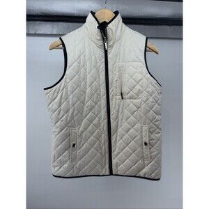 Lauren Ralph Lauren Black Cream Zip Quilted Reversible Vest Pockets M EUC