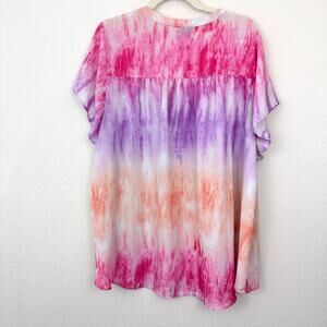 Torrid Womens Blouse Top Size 3X Watercolor Flowy Short Sleeve Pink