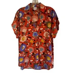 CAbi Visionary Replay Colorful Floral Short Sleeve Blouse
