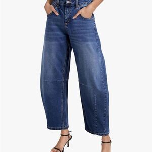 Hight rise wide leg woman’s barrel jeans.