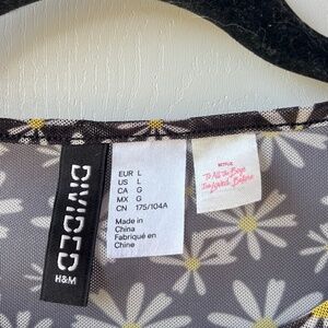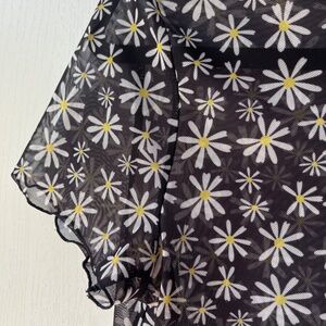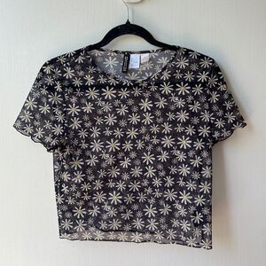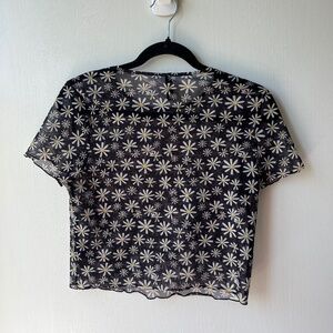 Stylish crop top with floral pattern. Sheer fabric. Perfect for layering.