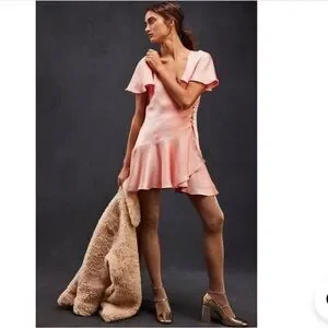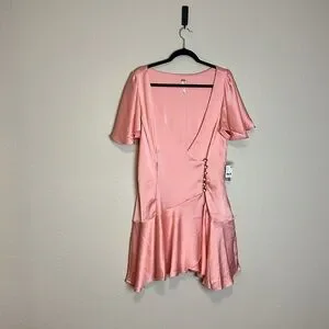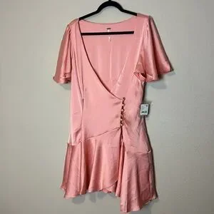 Free People Dress Scarlett Satin Ruffle Wrap Mini Peach Size XL NWT