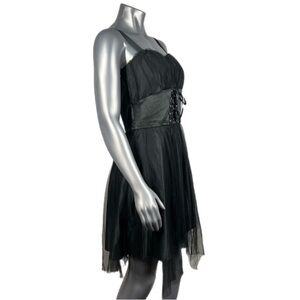 Dressfo | Black Corset Tulle Skirt Dress Goth Punk Formal Dress
