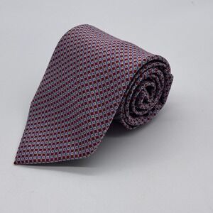 Giorgio Brutini Polyester Tie Gray Blue And Red Geometric Hand Made Tie