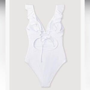 CUPSHE Women's Ruffle Sleeve One Piece Swimsuit V Neck Lace Up - White XL