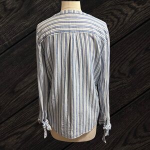 J. Crew (Mercantile Collection) striped blue & white button-down shirt with ties on the cuffs. Women's size medium.