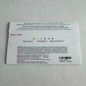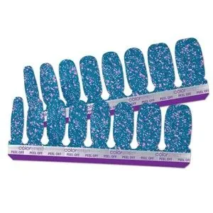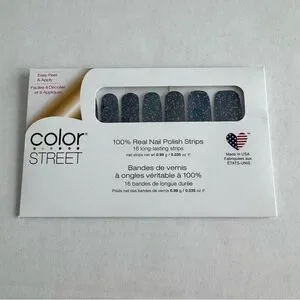 New in package Color Street nails. Retired “Frosty Nights” is a cool teal blue with pink holographic glitter.