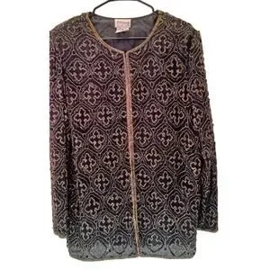 Vintage Stenay Black & Gold Silk Beaded Blazer Jacket | Women's Size Large Glam