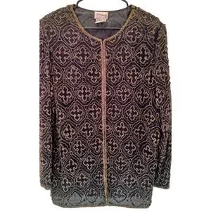 Vintage Stenay Black & Gold Silk Beaded Blazer Jacket | Women's Size Large