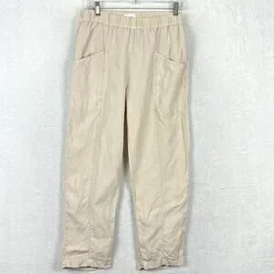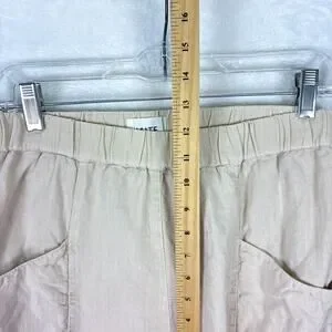 Mate The Label Willow Pull On Pants Women S Beige Crop Linen Preppy Resort Minimalist USA