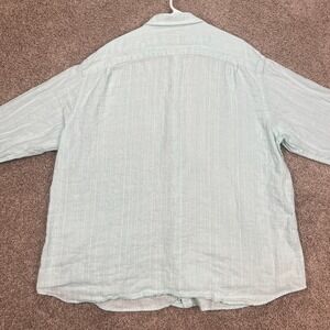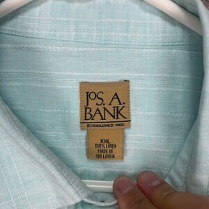 Jos A Bank 100% Linen Button Down Shirt Mens XXL Blue Textured Long Sleeve