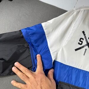Southpole, windbreaker, jacket, pullover, mens, USA, white, blue, black, size M, retro, streetwear, 90s, color block