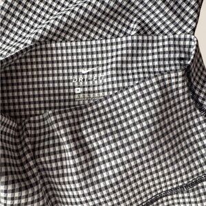 Experience comfort and style with these Nike leggings, featuring a sleek black and white gingham. Designed with a high-waisted fit, they offer a flattering silhouette perfect for both athletic activities and casual outings. The stretchy material ensures ease of movement, making them an ideal choice for your active lifestyle.