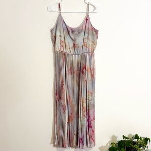 Excellent condition Steve Madden Marilyn Rose Pink Pleated Midi Satin Tie Dye Dress. Pull on styling. Adjustable spaghetti straps.