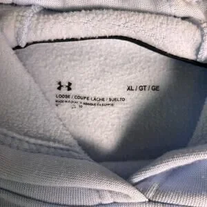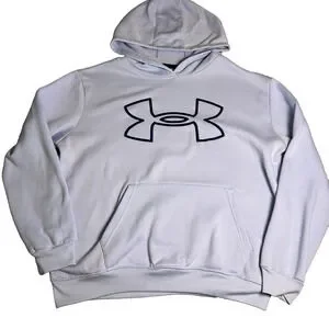Under Armour logo hoodie in womens XL, soft light blue with classic chest branding and a relaxed, cozy fit ideal for everyday wear. Lightweight yet warm, this pullover is perfect for layering to and from the gym, morning walks, or casual errands. Kangaroo pocket adds practicality, while ribbed trim keeps the shape secure without restricting movement. Smooth interior finish feels gentle on the skin, making this an easy grab-and-go essential for transitional seasons. A comfortable, sporty staple that blends performance appeal with casual style for effortless outfits any day of the week.